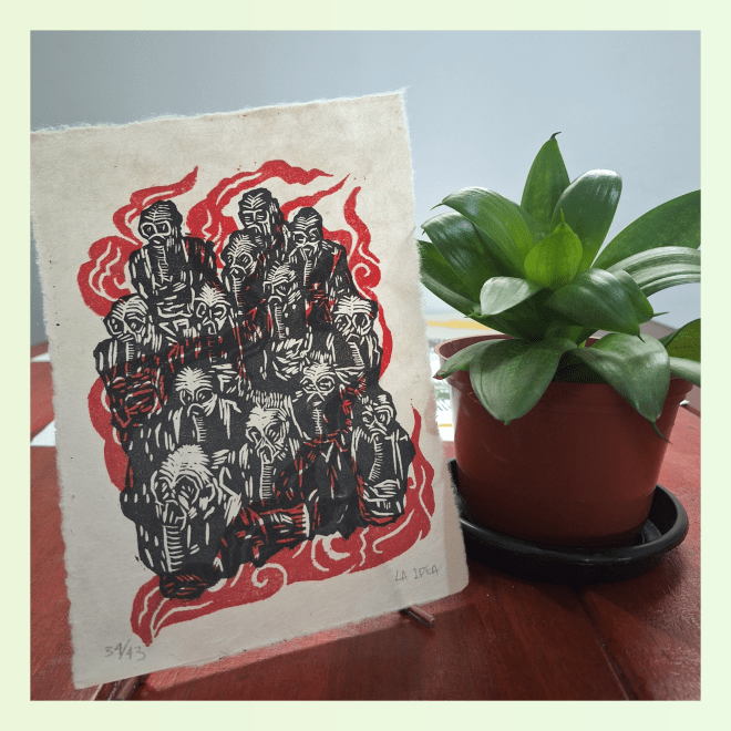 Dia 14 de dezembro estarei em Buenos Aires, participando da MIGRA FERIA DE IMPRESOS. Será minha primeira vez participando de uma feira de impressos fora do território nacional. Será muito massa poder divulgar minha produção e minhas ideias para mais pessoas que se interessam por gravuras, e suas relações com o ativismo. A feira será no Laboratório de Artes Buenos Aires e eu participarei apenas no domingo (não vá me procurar lá no sábado hein?). A entrada é gratuita, mas pede-se doações de alimentos não perecíveis e roupas em bom estado.