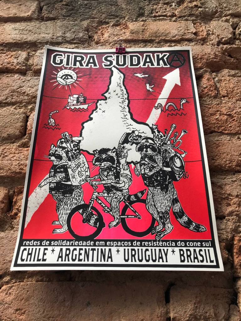 Como muitos sabem a organização autônoma e a criação e gestão de espaços de resistência é o tema de minha pesquisa na pós-graduação em educação (leia a dissertação clicando aqui). Acredito que esta viagem também poderá agregar aos meus estudos mais informações e ideias em como prosseguir com esta pesquisa em outros âmbitos também. Porém, para uma pessoa autônoma como eu (sem férias, sem 13º, sem descanso), os custos da viagem precisarão ser arcados de outras maneiras. Dito isto, lançamos uma campanha de arrecadação de fundos para que pessoas situadas no continente europeu possam colaborar (conhece alguém que tá lá?, mande este link) e também fizemos alguns eventos para arrecadar dinheiro com a venda de bebidas. Outra forma de nos ajudar é adquirindo por R$60 o pôster em serigrafia que produzimos fazendo alusão ao tour (imagens logo abaixo) e também a partir da contribuição voluntária de qualquer valor pela chave pixcyco.idea@gmail.com (qrcode aqui).