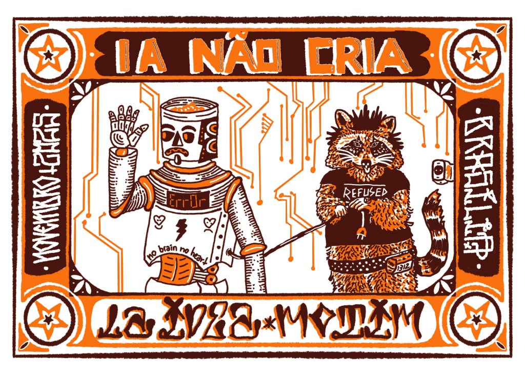 Olá personas, espero que se encontrem bem. Passando para avisar que nos dias 8 e 9 de novembro estarei na Biblioteca Mário de Andrade em São Paulo participando da Feira Miolos. Uma vez mais em 2025 terei a oportunidade de compartilhar espaços de feiras em São Paulo com grandes artistas das impressões e publicações autorais e independentes, além de ver grandes amizades e poder mostrar um pouco mais do que faço, conhecer mais pessoas e tals, ampliando esta grande rede de gente que trampa com papel. Nesta oportunidade, também fui convidado para participar do Papo Tatuí, gravando o episódio do podcast ao vivo no sábado às 17h. Estou bem ansioso com isto tudo. Nos vemos em breve. Até.