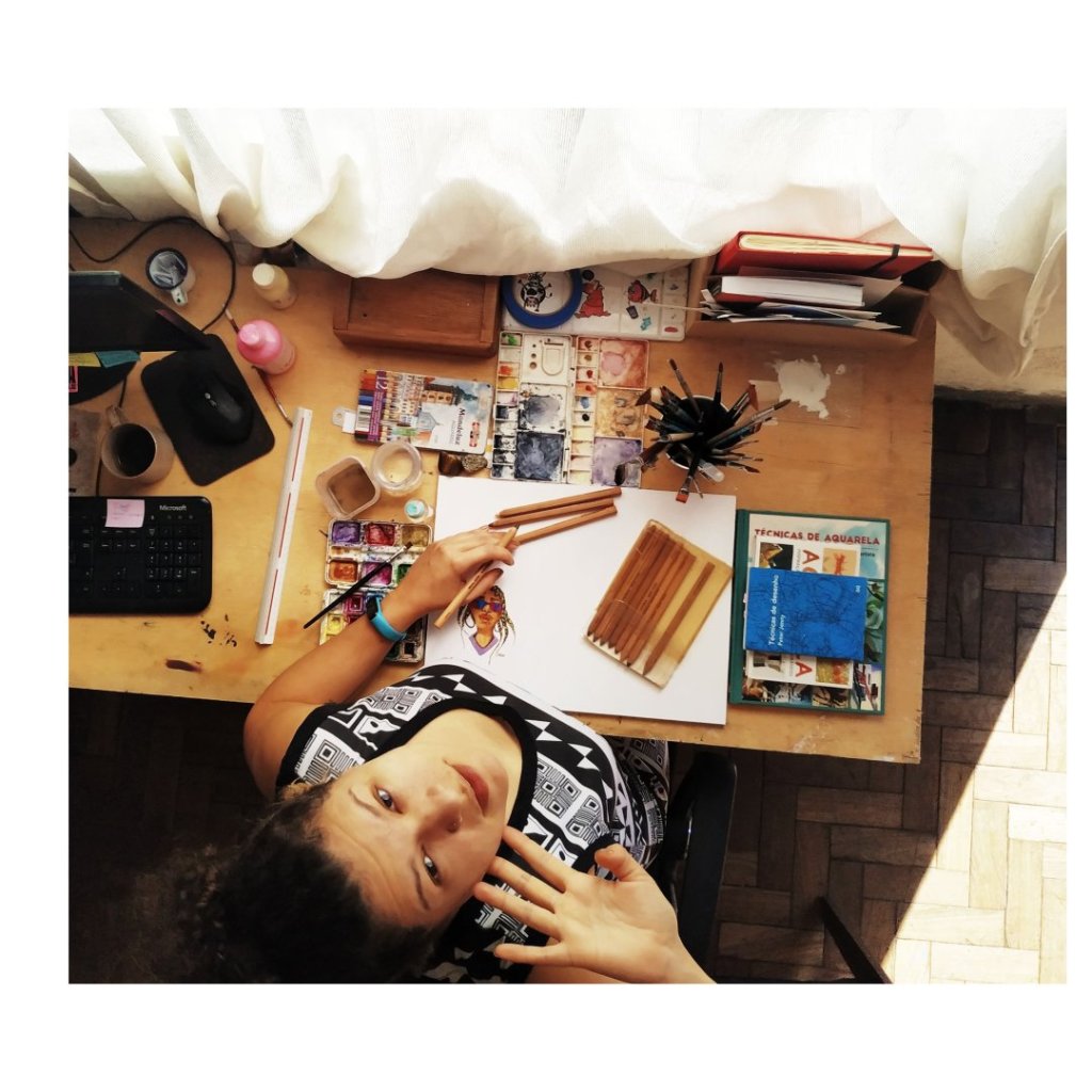 2 – Prestenção nas músicas que você escuta e nos livros que você lê. A partir dessas duas dificílimas tarefas é de onde vem várias de minhas ideias. Sou muito influenciado pelas bandas que escuto. Punk, Hardcore, Rap, Cumbia, sempre tem alguma ideia nas letras que te faz querer produzir sobre. Com as leituras acontece o mesmo. Livros são ótimas referências de ideias. Uma boa literatura de ficção, sociedade, contos, registros, tudo isso eu trago para o que eu faço.