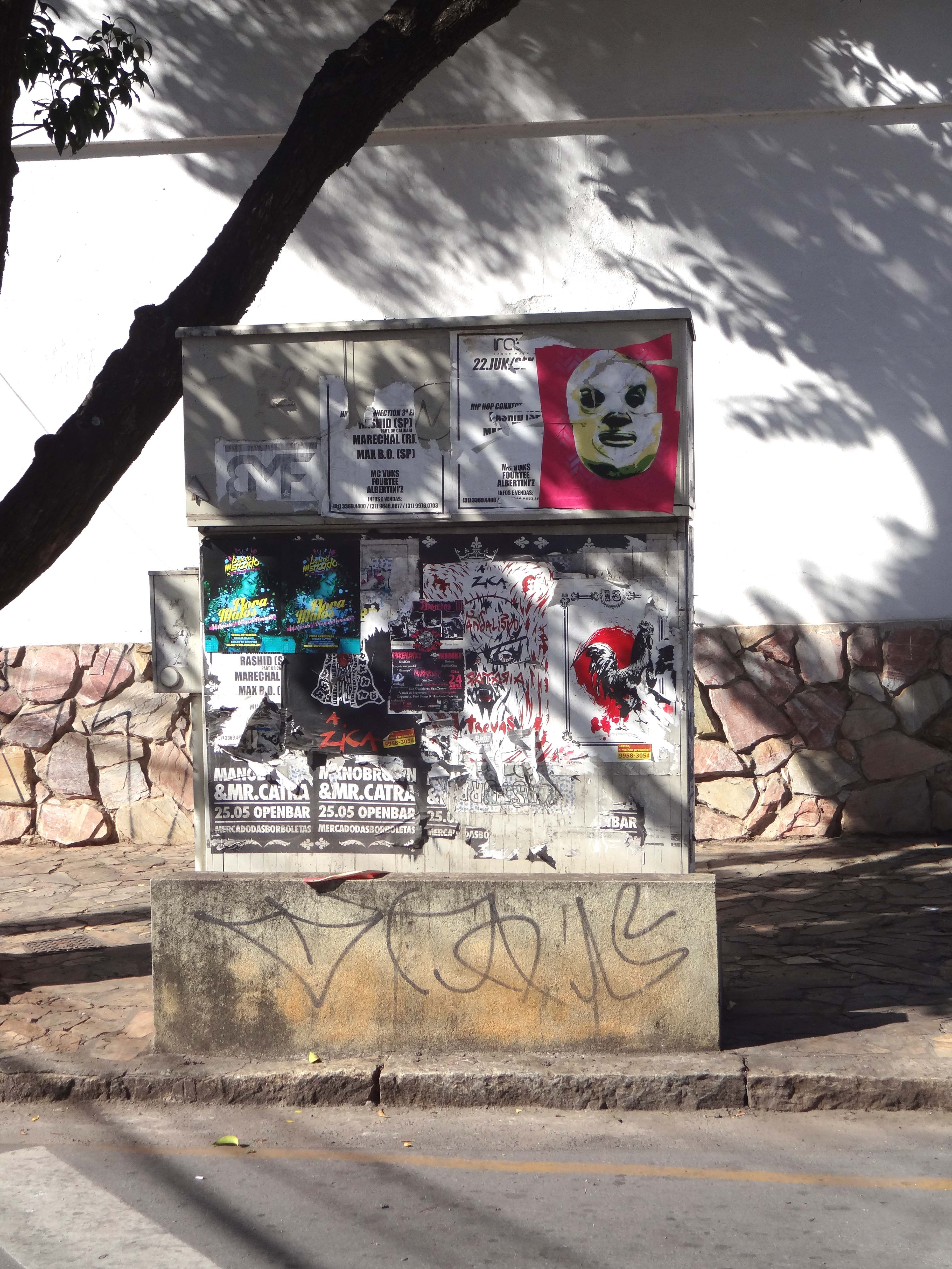 Acho que foi nessa época que eu comecei a perceber, também, os trabalhos do Cidadão Comum (Hoje, apenas Comum) pelas ruas de Belo Horizonte. Eram cartazes produzidos com estêncil, impressões em várias combinações de cores, rica em detalhes e sempre com a inscrição do autor em algum lugar da imagem.