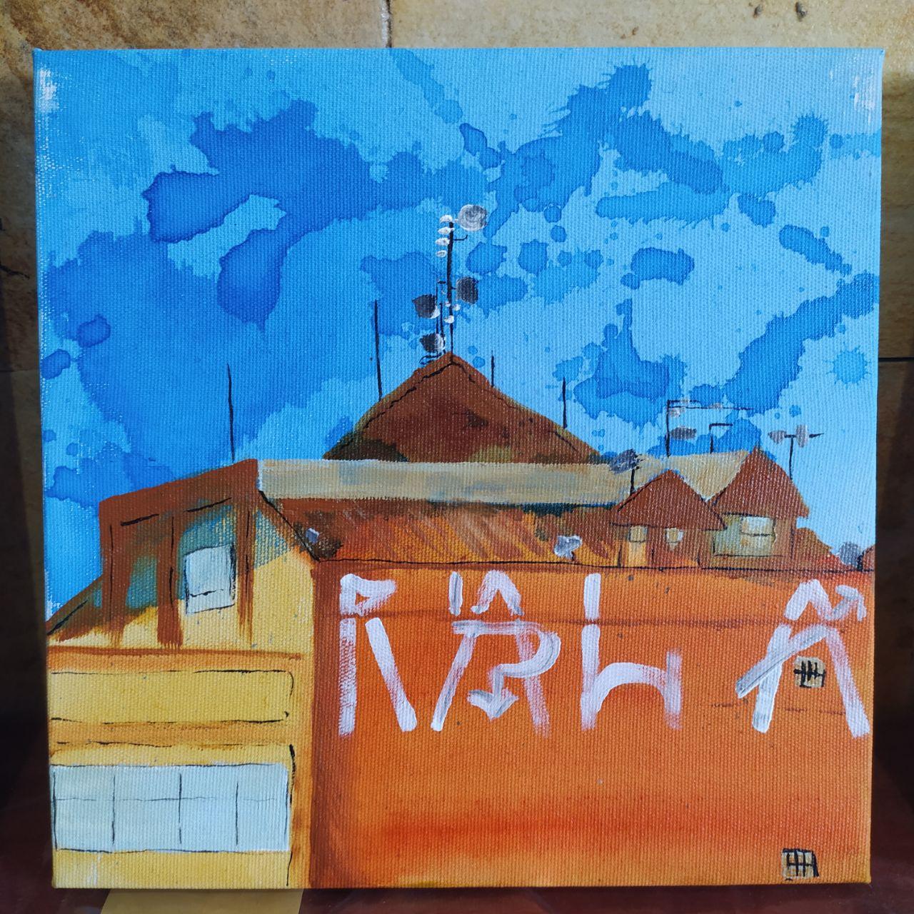 Aproveitando 3 telas de pinturas pequenas, de 20×20 cm, e várias fotos que tirei a partir de edifícios altos no Centro de BH, finalmente retomei minhas habilidades de pintar com tinta acrílica. A ideia é representar essa cena comum na paisagem urbana Belorizontina, onde topos de prédios (rooftops) levam os nomes daqueles que ousaram escrever por ali, juntamente com essas antenas, emissoras e receptores das diferentes frequências oriundas de sinais diversos.