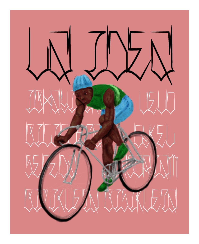 Essa ilustração foi feita sem nenhum propósito aparente. Tava testando alguns efeitos enquanto esboçava alguma coisa e acabei me dedicando à esta tarefa mais que o necessário. Queria testar essas texturas de luz e sombra com retículas, e acabou que virou um emaranhado de retículas, rs. Mas talvez o que eu mais curti foi a brincadeira que tinha feito no Insta. A ideia era abrir a caixa de mensagens para que as pessoas pudessem sugerir uma fala ou uma descrição da imagem. Surgiram alguns muito bons como “Estou indo ver o filme da Barbie” ou “Até o capiroto é mais saudável que eu”. Algumas mensagens que arrancaram gargalhadas de minha pessoa foram “Pedalar, porque essas coxas não vão se definir sozinhas”, “Indo pra casa do boy sedento de tesão”, “Aff, esqueci a mochila do ifud” e “Preciso cortar a unha, tá agarrando no pedal”.