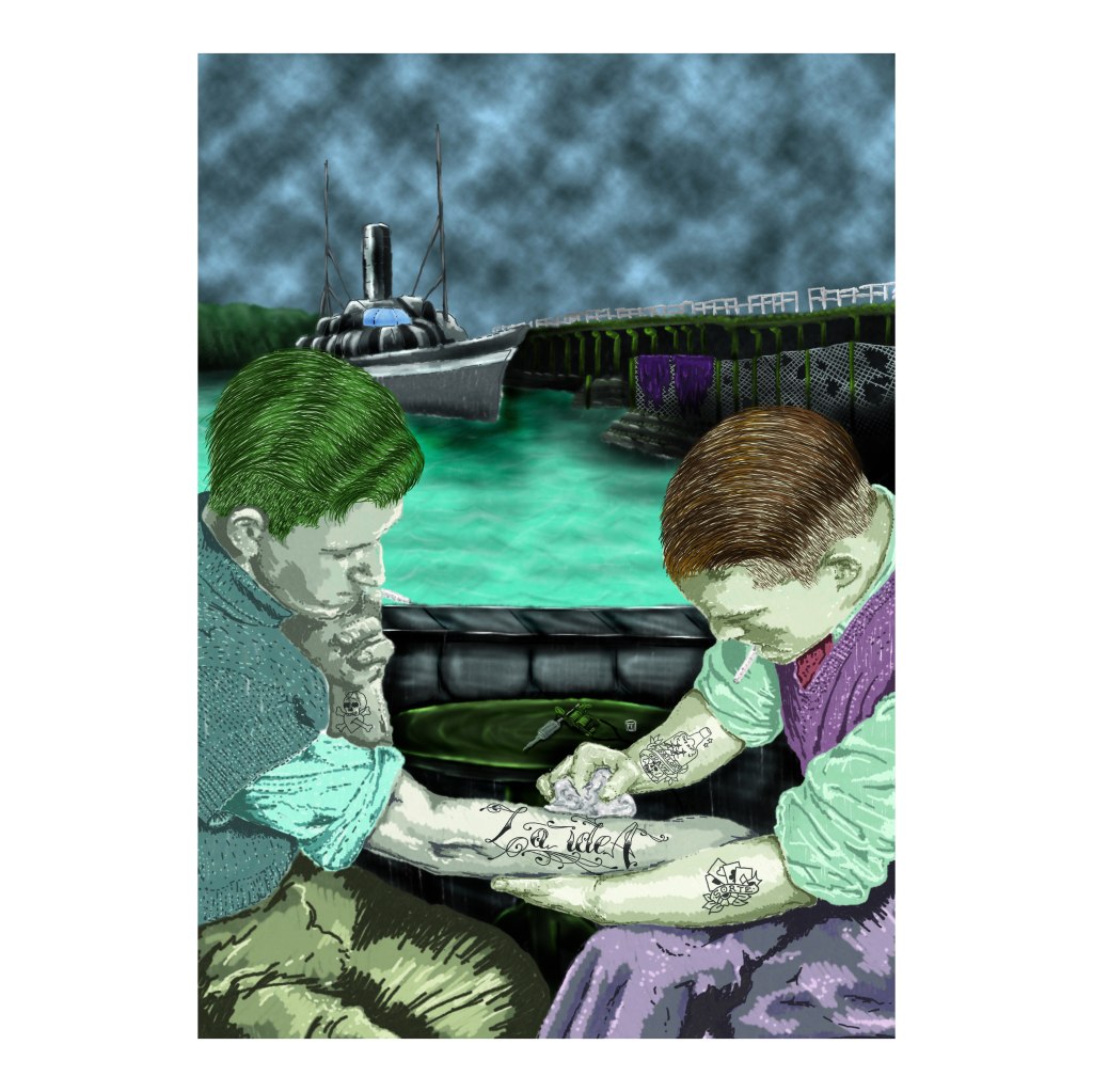 Essa ilustração é uma homenagem a esse primórdio das tatuagens tradicionais ocidentais, representando a vida dos marinheiros (que eu boto muita fé, apesar de ser contra o militarismo e as forças armadas). O pôster impresso em alta resolução pode ser adquirido na Loja Online.